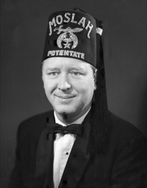 Potentate of Moslah Shrine Temple in 1959, imperial potentate of the Shrine of North America in 1971-72 and chairman of the Shriners Hospitals for Crippled Children from 1977 to 1982.
